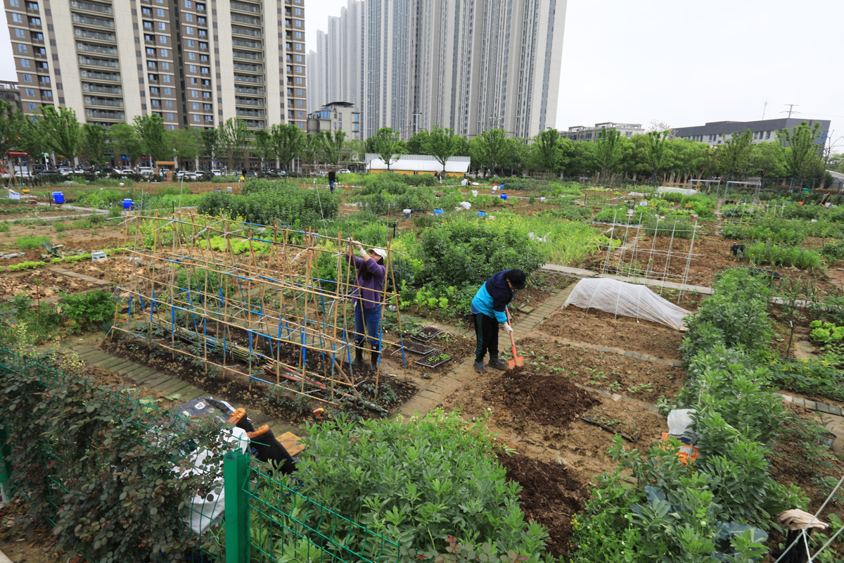 “欢迎来摘菜。”4月15日,在武汉经开区官士墩智趣园,旧日的一片荒地,通过管理,一半是公园一半是菜园,招领种菜的居民和逛公园的市民,乐在其中。