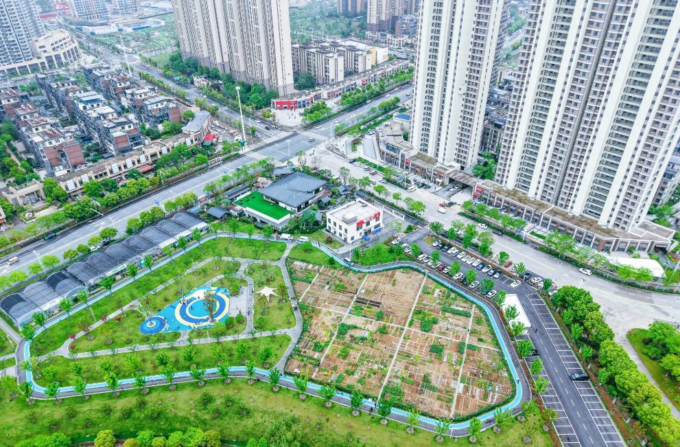 除了同享菜园,口袋公园里,除了绿植、花草外,还布局了亲子游乐区、休闲步道,并完善了15分钟生活圈配套。春日里,这儿成了市民接近天然的好去处,孩子们在五颜六色沙池里嬉戏,年轻人沿着绿道骑行打卡,老人们在凉亭里下棋谈天,一到周未,逛公园的市民观看菜园蔬菜的长势,从前的城市“伤痕”,现在变成了充溢烟火气的美好空间。
